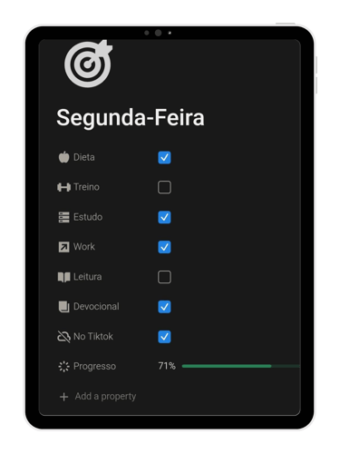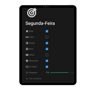 Tenha controle total sobre sua rotina. Saiba exatamente o que fazer no seu dia a dia, e acompanhe a sua evolução diariamente, com controle total dos seus hábitos